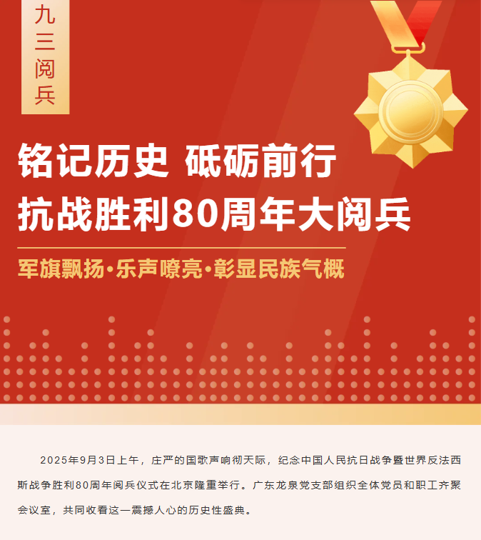 銘記歷史,砥礪前行|廣東龍泉組織觀看紀念中國人民抗日戰(zhàn)爭暨世界反法西斯戰(zhàn)爭勝利80周年大會